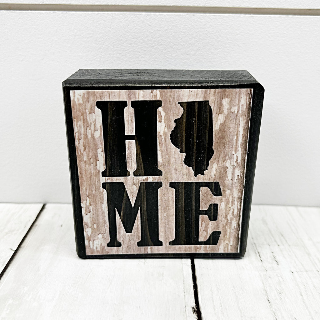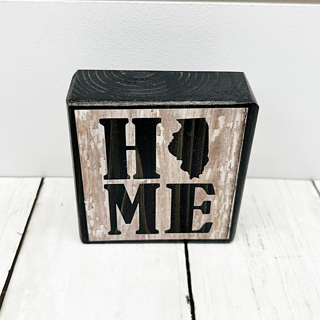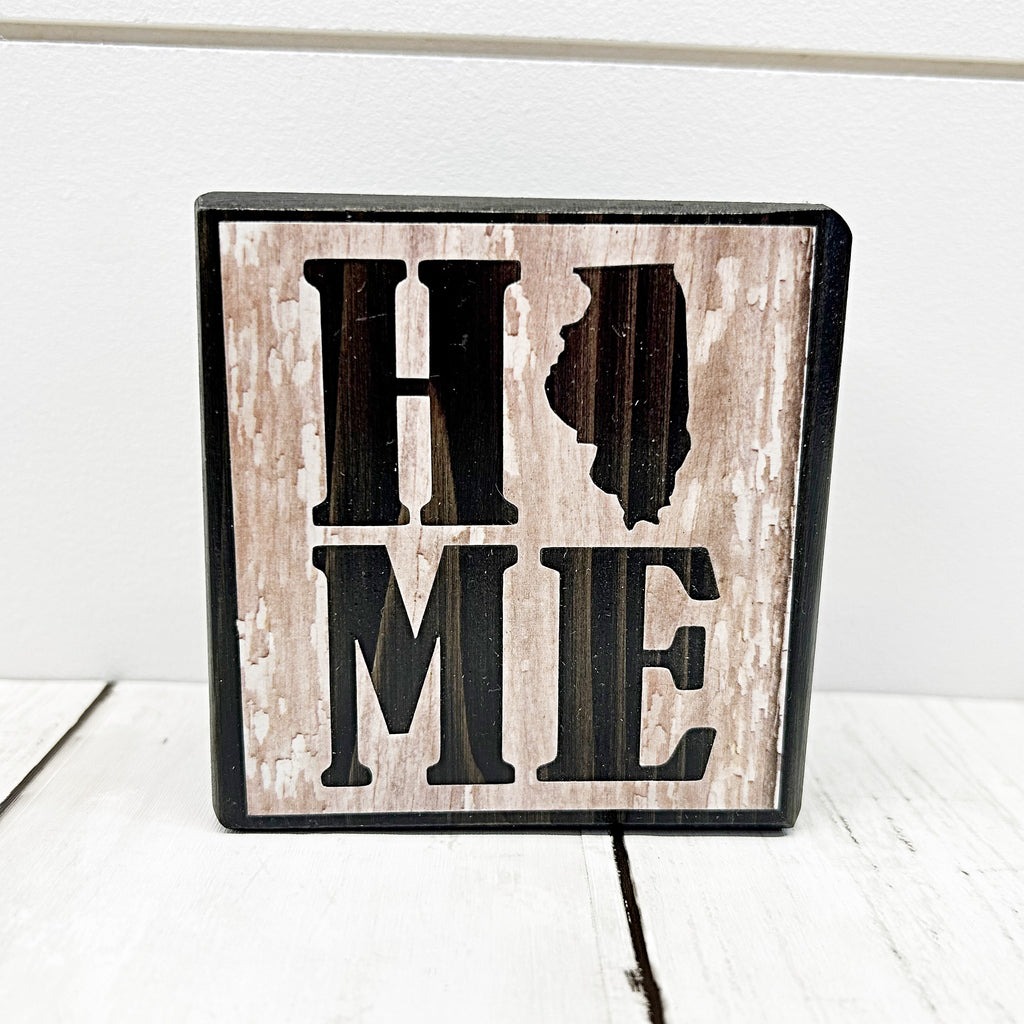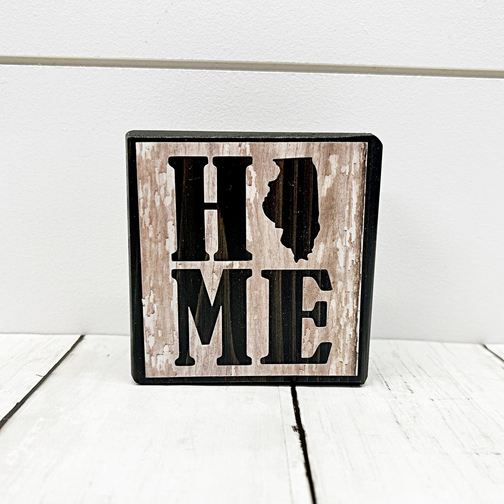 3 Inch Illinois Home Block Sign, Decor for Tiered Tray or Shelf