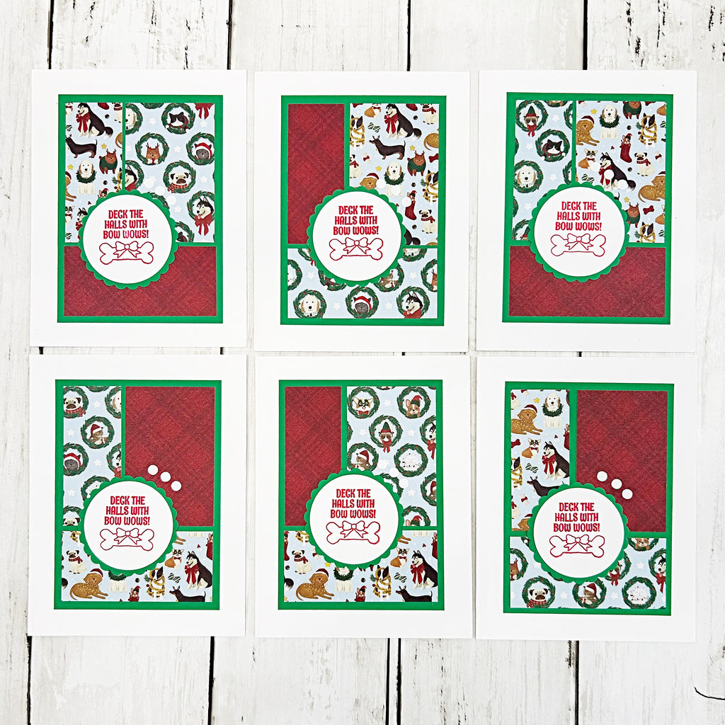 Cute Christmas Dogs Card Set of 6, Handmade Holiday Cards