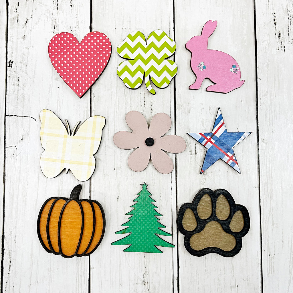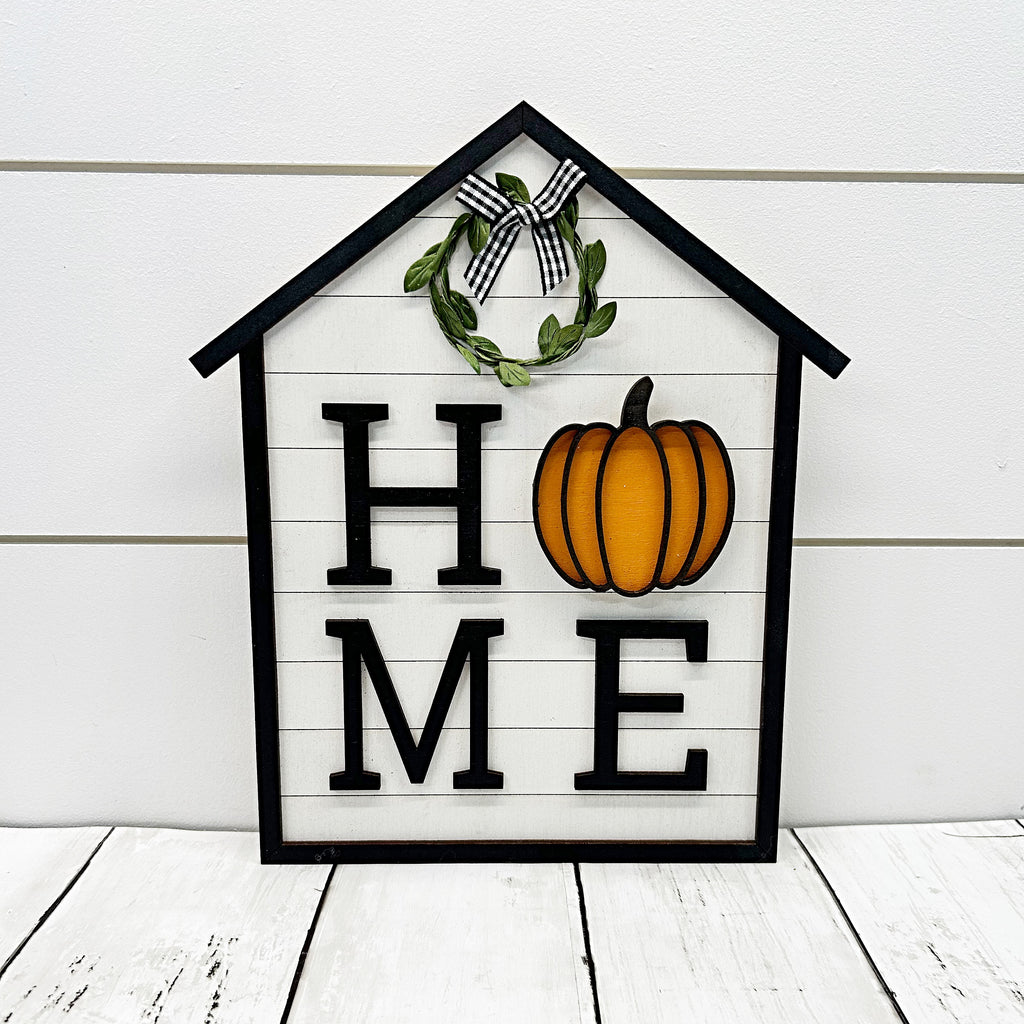 Make your holiday decorating easier! This Home sign allows you to change out the icon shape with each season or holiday throughout the year.