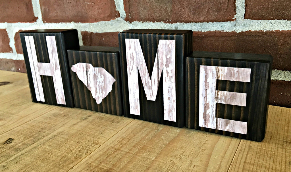 South Carolina Home Rustic Wooden Letter Block Set, Decor for Shelf, Mantle, or Tabletop