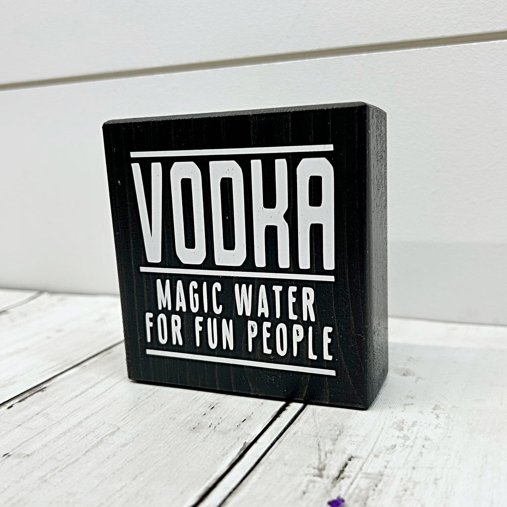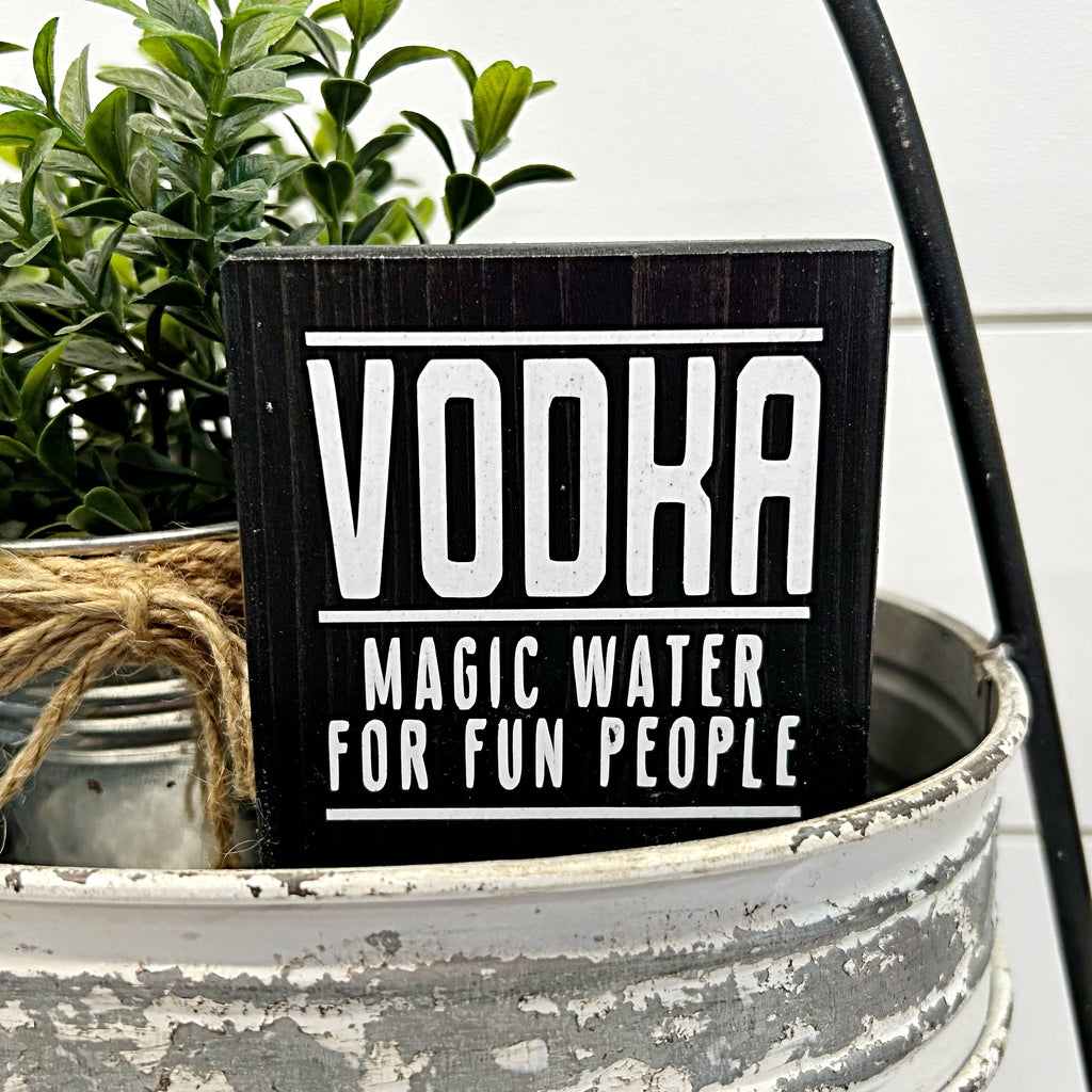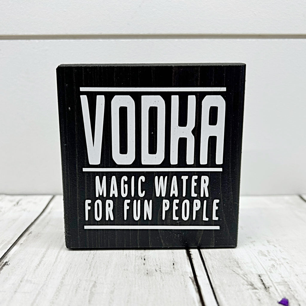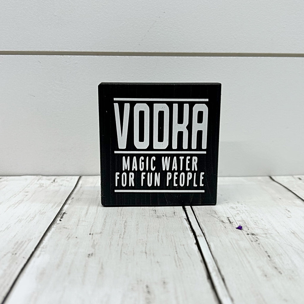 Vodka Magic Water for Fun People Mini Sign, 3 Inch Block for Bar, Tray or Shelf Decor